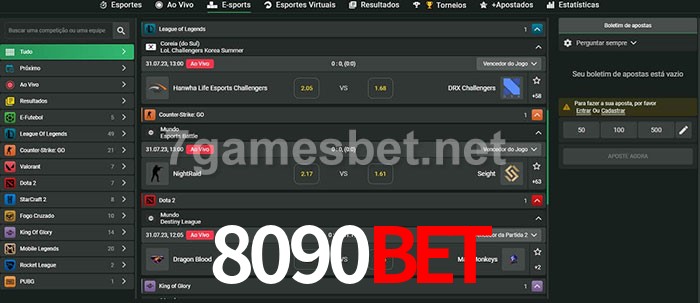 O 8090bet oferece uma grande seleção de opções de apostas em e-sports com probabilidades competitivas